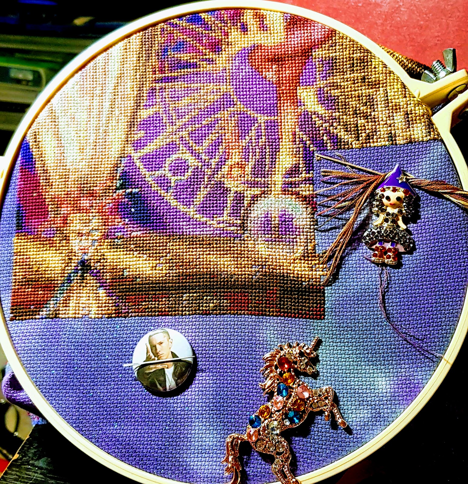 Sharine is stitching across the chart page by page and I am stitching down in columns. One day we will happily meet somewhere in there ๐ค๐